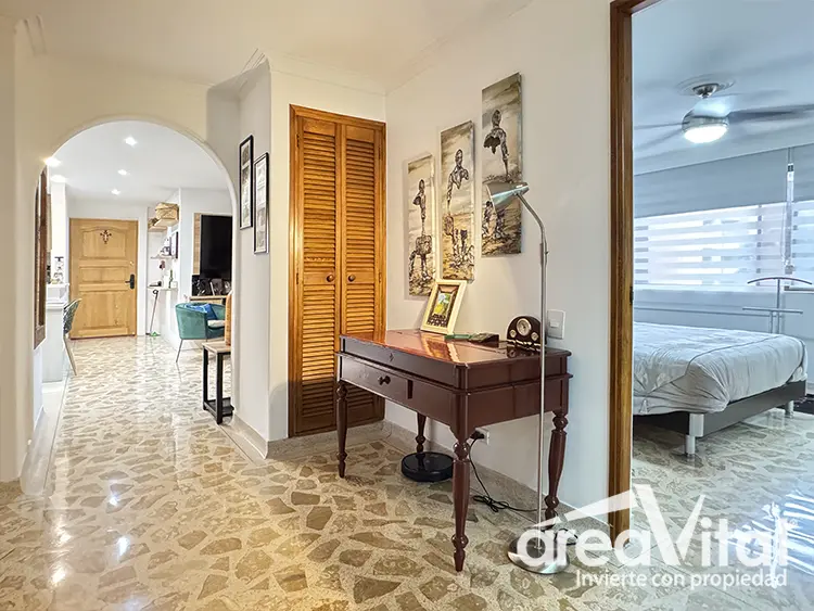 Consta de 3 habitaciones, 3 baños, cocina abierta, zona de ropas, parqueadero doble cuarto útil y remodelado. Portería 24/7, parqueadero de visitantes exterior, piso en mármol y granito. Ascensor remodelado