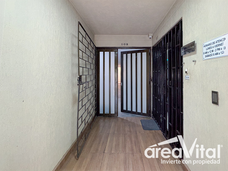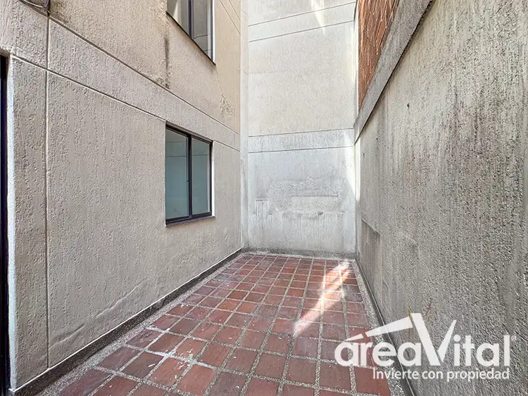Ventana al exterior con reja metálica enrollable, pisos en cerámica