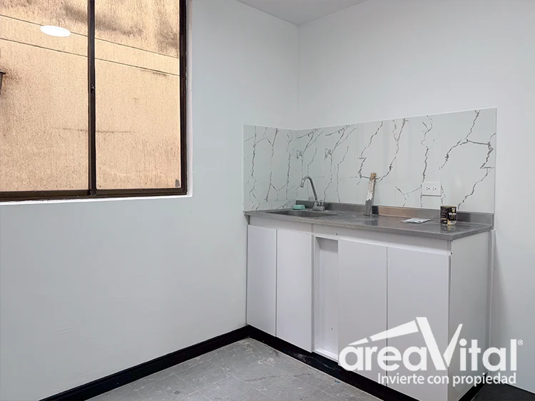 Consta 1 Salón (Local), 2 baños con lavamanos sin cabina, cocineta, espacios de almacenamiento en zona posterior descubierta, mesón acero inoxidable 1,5 metros, cajoneras inferiores.